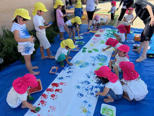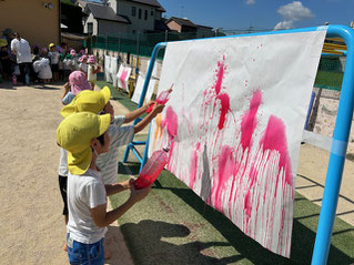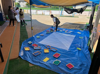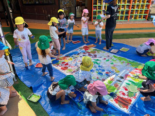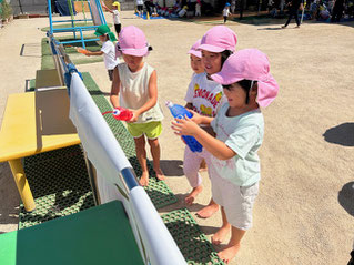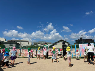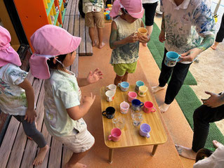 お外で思いっきり遊んだ楽しい活動ですが、暑さが心配なので、途中、お茶休憩をしながら遊びました。