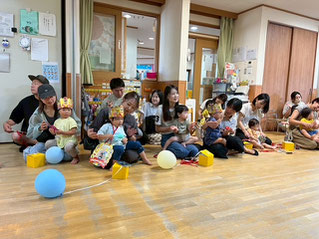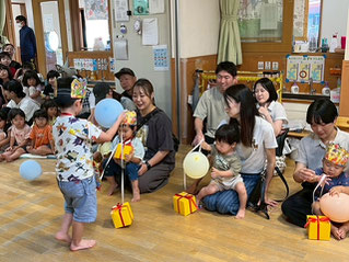 子ども達にとって年に一度の主役の日。月に一回、友達・家族・先生、一緒に喜びを分かち合います。お昼の給食をおうちの人と一緒に食べてお祝いします。おめでとう!