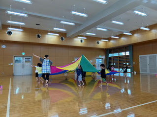 年中、年長さん達は、運動会練習で体育館に行きました。広い体育館で子ども達ものびのびと活動ができました。